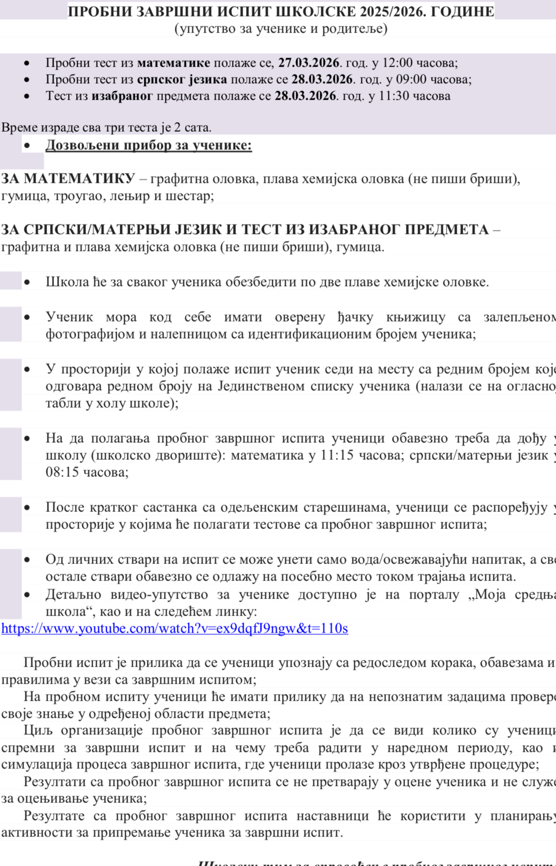 Пробни завршни испит.